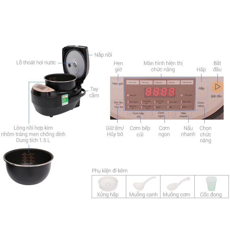 - Bảng điều khiển điện tử hiện đại, dễ dùng với tiếng Việt, đa chức năng, hữu ích cho từng bữa ăn gia đình