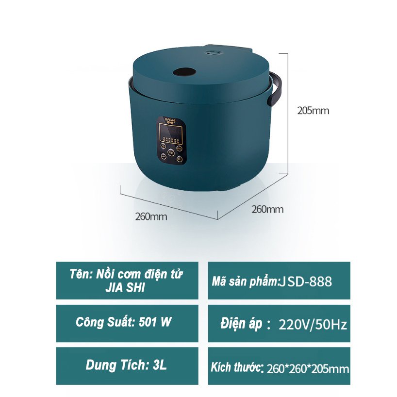 - Với nồi cơm điện tử đa năng Jiashi, mỗi ngày một món khác nhau, miễn là bạn muốn.Tất cả bạn cần làm chỉ cần chỉ cần hẹn giờ với một nút nhấn, phù hợp sử dụng cho 1-3 người