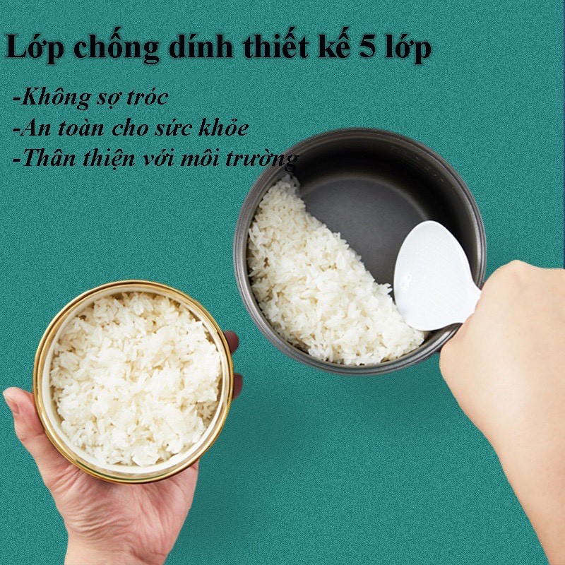 📍Nồi Cơm Mini thiết kế 5 lớp, phủ lớp chống dính đá Ceramic: không sợ tróc, an toàn cho sức khỏe, thân thiện với môi trường.