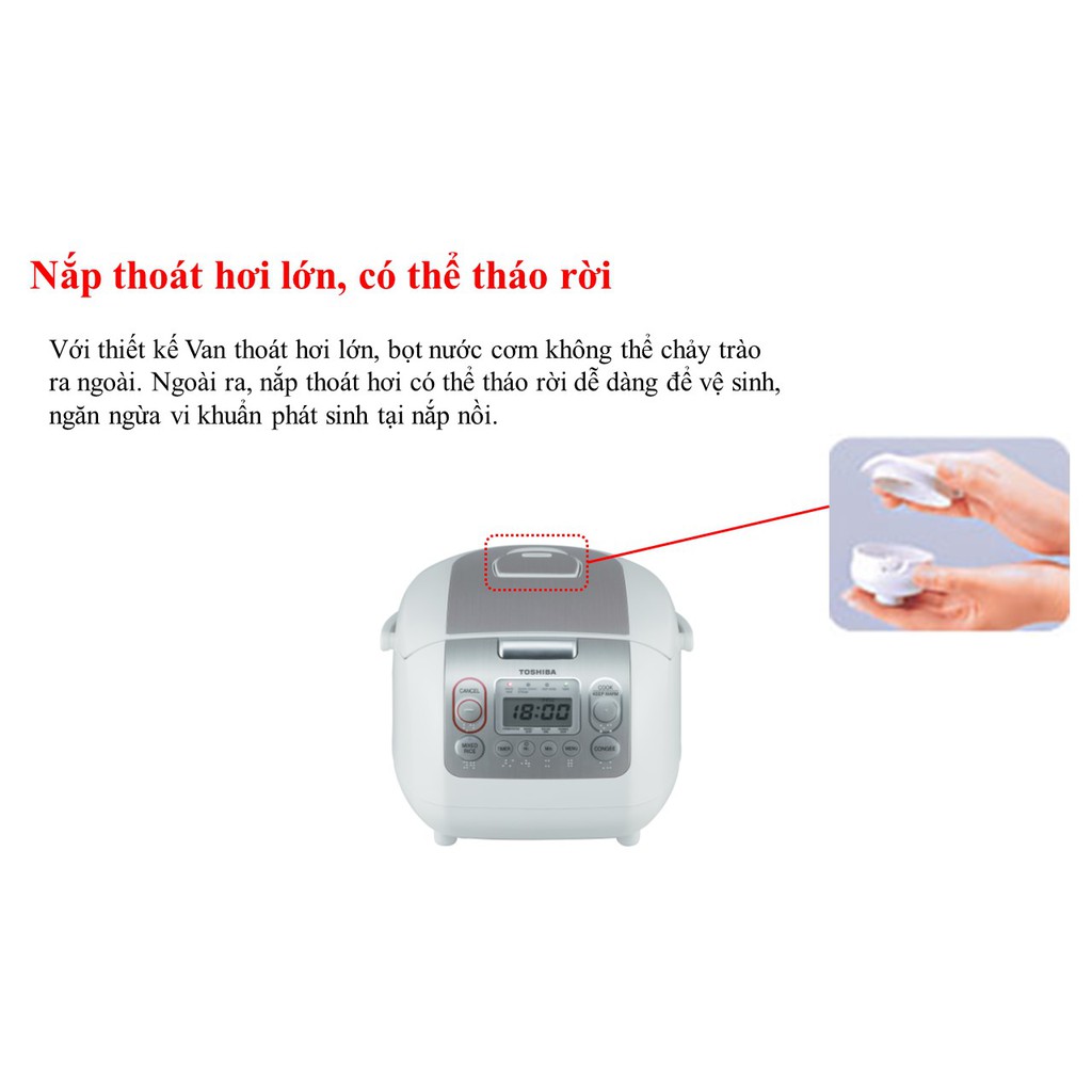 [Mã ELHADEV giảm 4% đơn 300K] NỒI CƠM ĐIỆN TỬ NẮP GÀI TOSHIBA 1.8 LÍT RC-18NTFV(W)