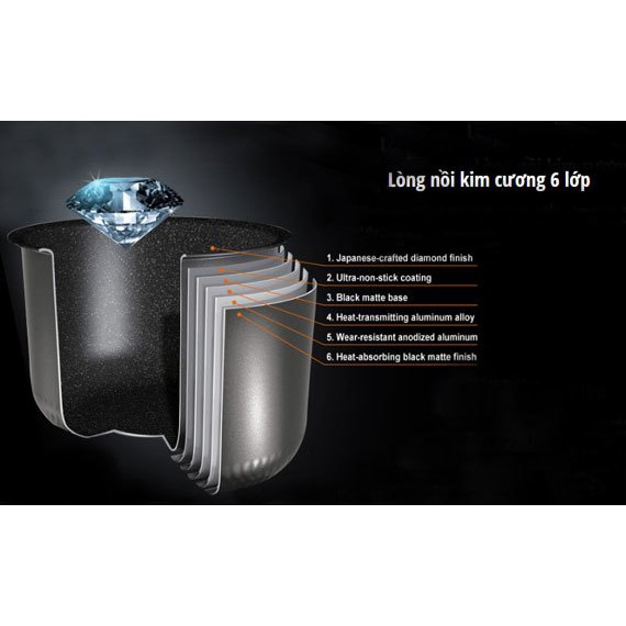 "- Nồi cơm điện tử, dung tích: 1L, 1.8L- Lòng nồi trong gồm 6 lớp vật liệu, phủ lớp bột kim cương, công nghệ dập nổi đáy nồi giúp nấu cơm ngon, nhanh và tiết kiệm điện