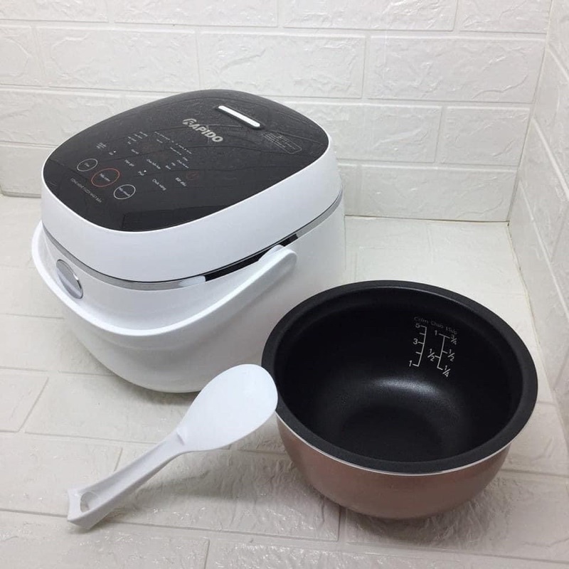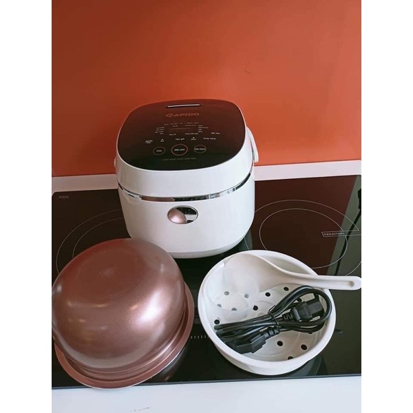 Nồi cơm điện tử Rapido thiết kế sang trọng hiện đại, màn hình điện tử lớn với phím bấm cảm ứng dễ sử dụng. 10 chức năng nấu giúp người dùng có thể dễ dàng nấu nhiều món ăn chỉ với 1 động tác đơn giản giúp tiết kiệm thời gian. Công nghệ Fuzzy Nhật Bản giúp gia nhiệt tuần hoàn, tỏa nhiệt đa chiều 360 độ, kiểm soát nhiệt độ chính xác, giúp giữ trọn vị ngon của món ăn. Đồng thời, van thoát hơi thông minh làm cho lượng nước được thoát ra ngoài một cách hợp lý nhất, nhưng vẫn giữ lại được các vitamin và dưỡng chất có lợi cho cơ thể. Dung tích 1.2L phù hợp với gia đình 2-4 người.Thiết kế sang trọng, tinh tế làm nổi bật không gian nhà bếp