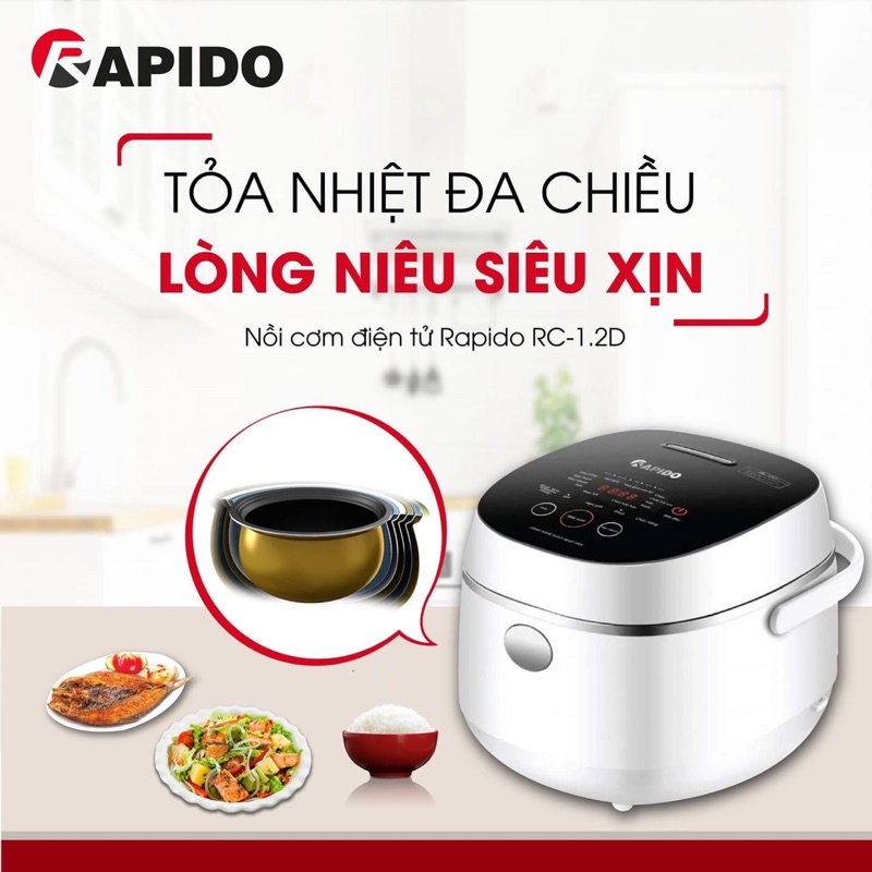 Nồi Cơm Điện Tử Rapido 1.2L RC-1.2D Có 10 Chức Năng Nấu - Bảo Hành Chính Hãng 12 Tháng