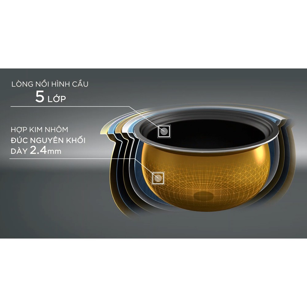 Màn hình cảm biến điện tử lớn dễ dàng thao tác. 10 chức năng nấu từ nấu gạo trắng, gạo thơm, nấu cơm nhanh, nấu súp, nấu gạo lứt, đến các món yêu cầu thời gian và kỹ thuật cao hơn như hầm cháo, hầm cháo trẻ em, hầm cháo hỗn hợp, làm bánh hoặc hấp đồ. Với từng chức năng nồi sẽ tự động điều chỉnh thời gian và nhiệt độ đảm bảo thực phẩm chín kĩ nhưng vẫn giữ được hương vị tươi ngon.