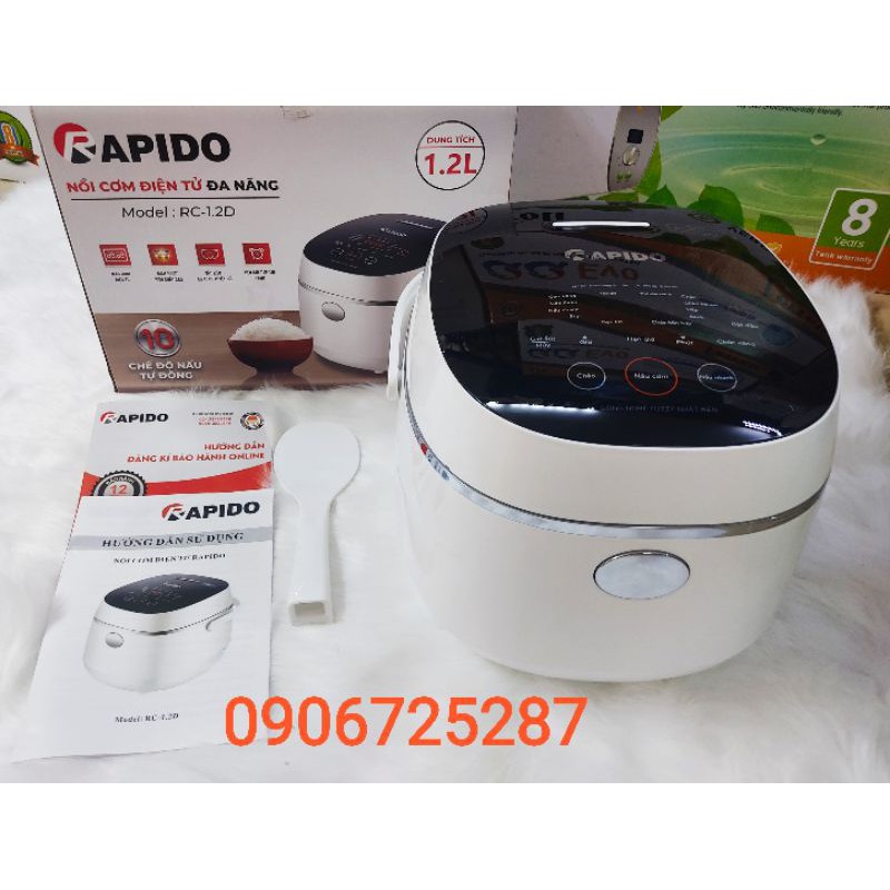Thiết Bị Điện Gia Dụng > Đồ gia dụng nhà bếp > Nồi cơm điện || Nồi cơm điện tử Rapido RC-1.2D công nghệ Nhật, 10 chức năng nấu (1.2L-500W chính hãng)Còn hàng