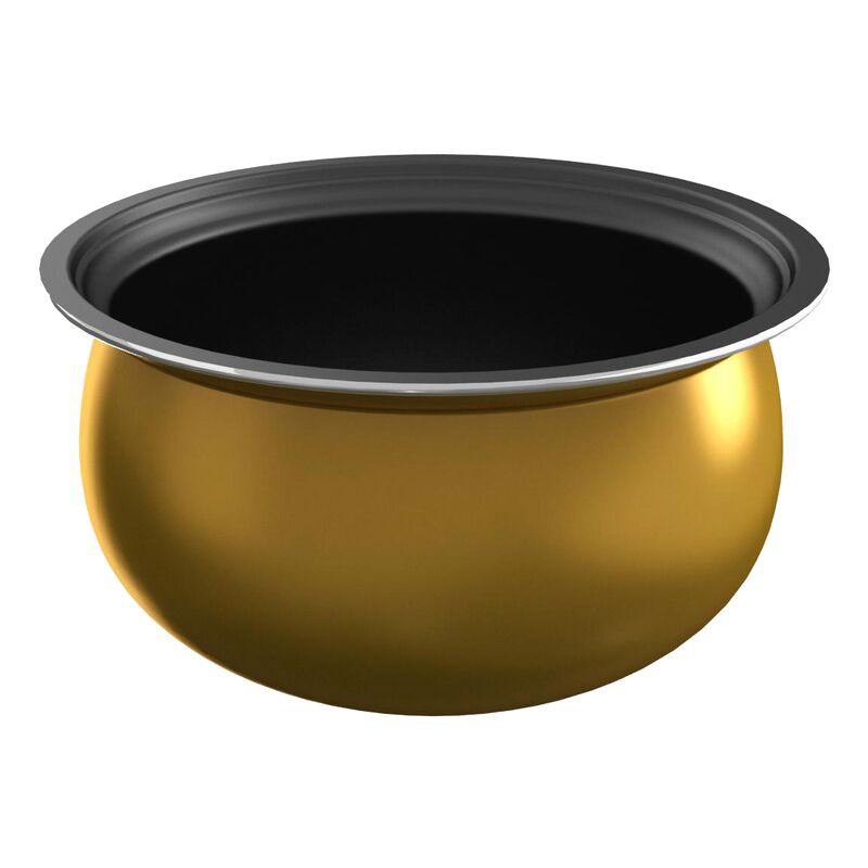 • Lòng nồi hình cầu 5 lớp, nhôm đúc nguyên khối, dày 2.4mm
