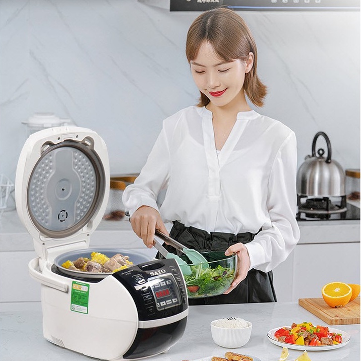 🤩 #Nồi_cơm_điện_tử_SATO_18DT021 chỉ với 1 nút ấn, có ngay bữa tiệc hoành tráng nhờ 8 tính năng được tích hợp đầy đủ, từ nấu cơm, nấu cháo ngũ cốc, làm bánh, hầm canh, hấp thực phẩm... đến nấu cơm ngay cả khi điện yếu. Người nội trợ hoàn toàn có thể trở thành "đầu bếp cừ khôi" của cả nhà nhờ sản phẩm thông minh này.