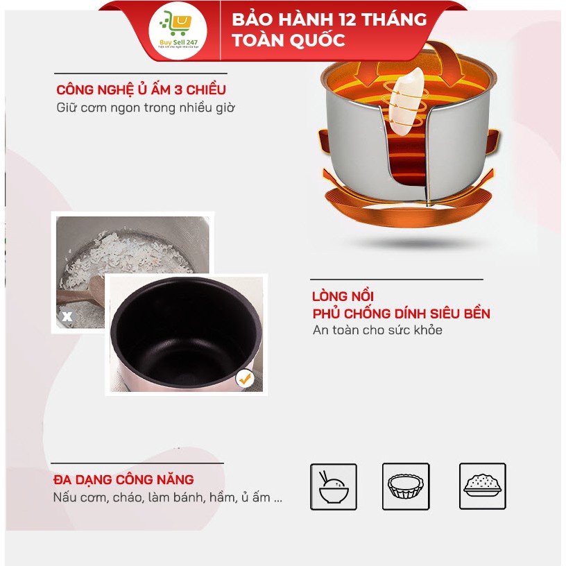 ✅ Tích hợp đa chức năng: Nấu cơm, cháo, làm bánh, hầm, ủ ấm …