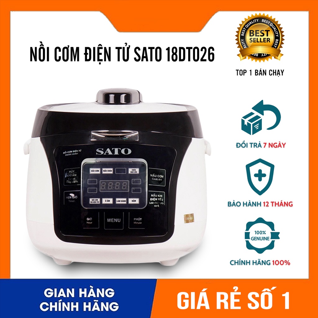 Nồi cơm điện tử sato 18DT026 dung tích 1.8L, Nồi cơm điện đa năng cho gia đình - Chính hãng 1 đổi 1 bảo hành 12 tháng
