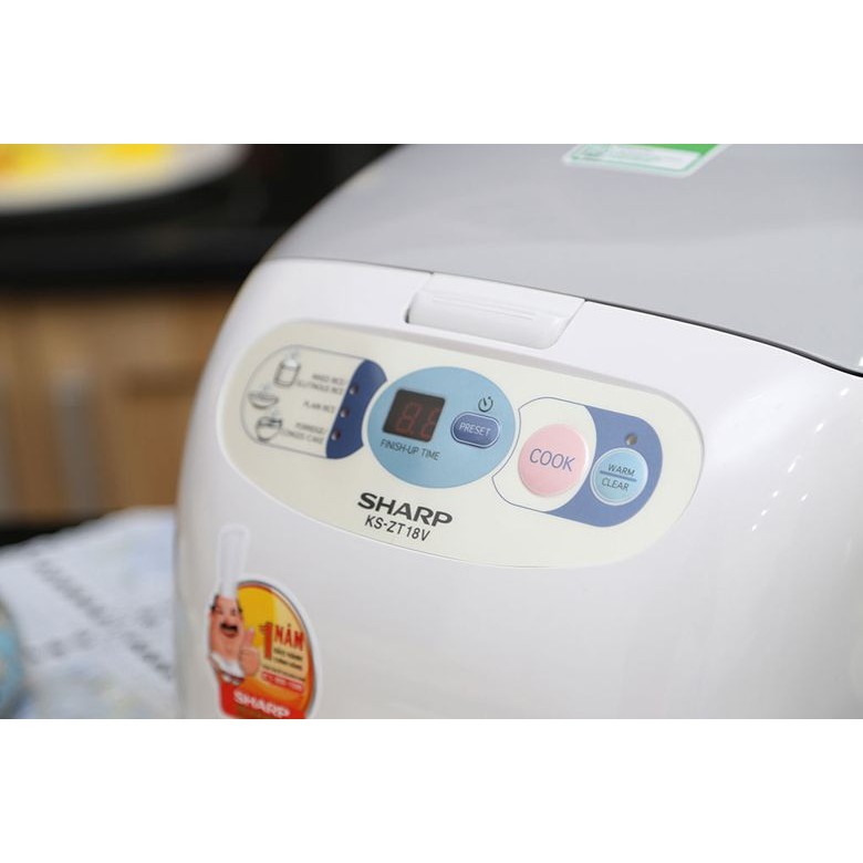 Nồi cơm điện tử Sharp KS-ZT18 mang thương hiệu nổi tiếng Nhật Bản, sản xuất tại Thái Lan, đảm bảo có độ bền, chất lượng vượt trội, thời hạn bảo hành lên đến 12 tháng.
