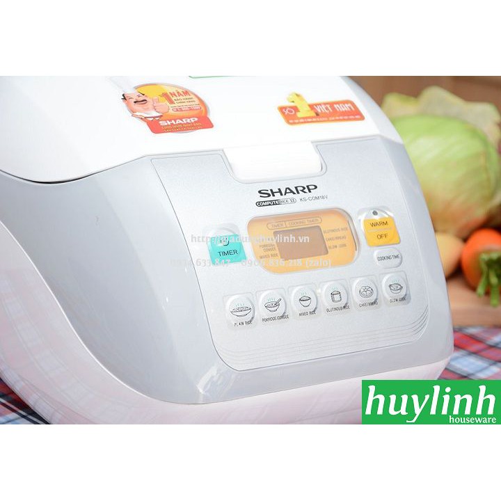 - Nồi cơm điện Sharp KS-COM18V 1.8 lít có bảng điều khiển điện tử kết hợp với màn hình hển thị LCD cho người dùng dễ dàng điều chỉnh các chế độ nấu trong quá trình sử dụng. Nồi cơm điện có chức năng hẹn giờ giúp việc nấu ăn trở nên tiện lợi hơn.