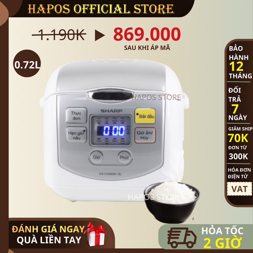 Thiết Bị Điện Gia Dụng > Đồ gia dụng nhà bếp > Nồi cơm điện || Nồi cơm điện tử Sharp KS-COM08V-SL 0.72 lít - HAPOS Phân Phối Chính HãngCòn hàng