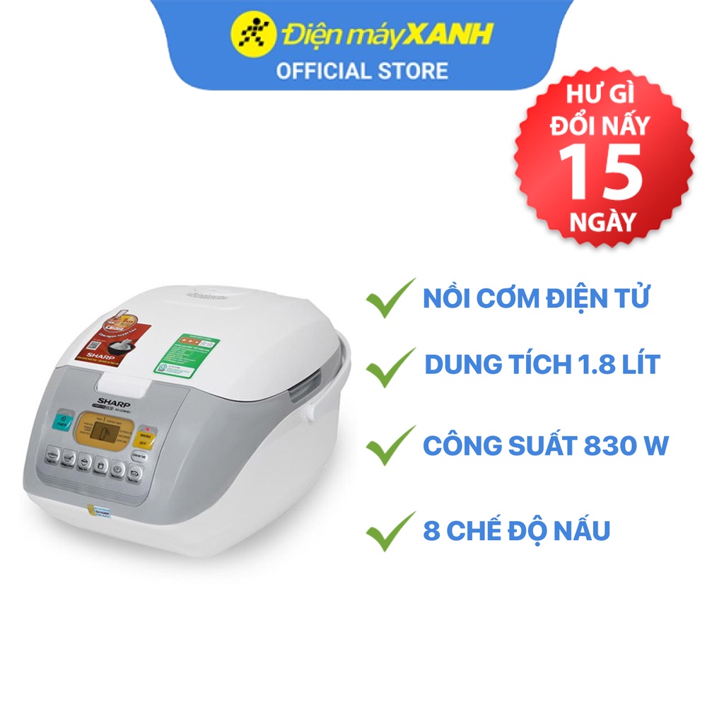 Nồi cơm điện tử Sharp KS-COM18V 1.8 lít 830 W lòng nồi chống dính - Chính hãng BH 12 tháng - Sản xuất tại Thái Lan