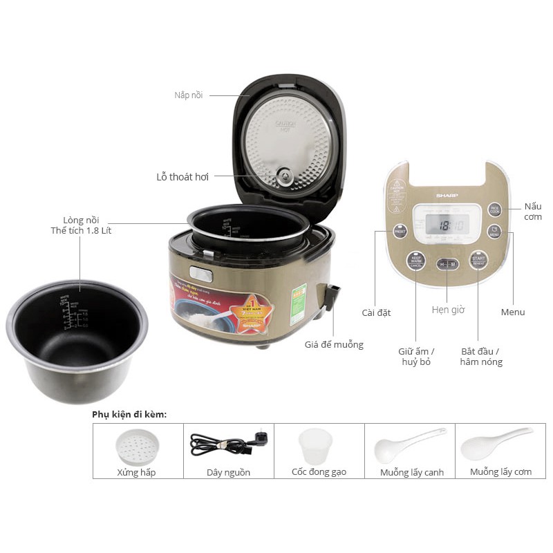 Thiết Bị Điện Gia Dụng > Đồ gia dụng nhà bếp > Nồi cơm điện || [Mã ELHADEV giảm 4% đơn 300K] Nồi Cơm Điện Tử Sharp KS-TH18-GLCòn hàng