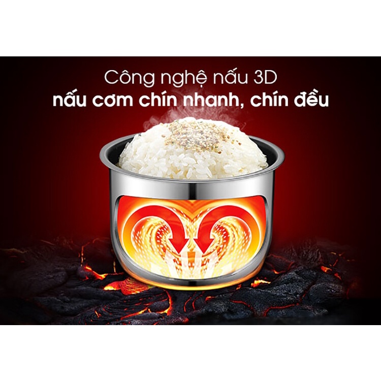 Nồi cơm điện 1.8L được thiết kế hiện đại, nhiệt lượng 3D được truyền từ phía dưới, phía trên và xung quanh nồi giúp hạt cơm chín đều. Giúp cho gia đình bạn luôn có bữa cơm thật sự tuyệt vời.
