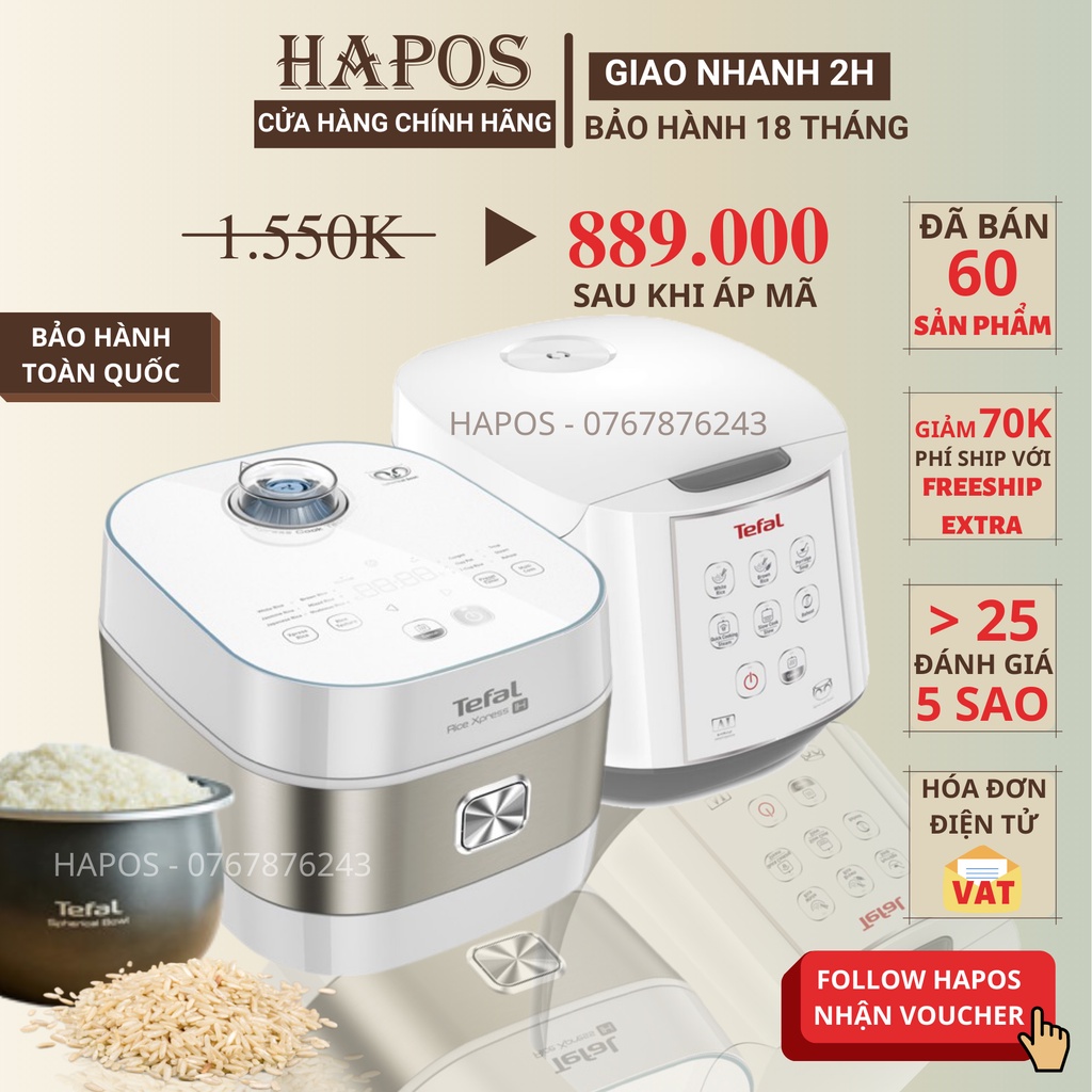 Nồi cơm điện tử Tefal 1 lít - 1.8 lít có xửng hấp, Nồi cơm điện cao tần lòng nồi niêu 4 - 6 lớp - HAPOS