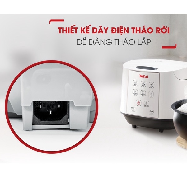 - Nồi cơm điện tử Tefal được thiết kế phần dây điện có thể tháo rời sẽ giúp bạn dễ dàng di chuyển