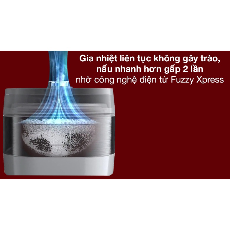 Khi đun sôi, các bong bóng khí được tạo ra liên tục. Để tránh nước tràn, cần giảm công suất làm nóng, từ đó làm chậm quá trình nấu. Với công nghệ Fuzzy Xpress, luồng khí được bổ trợ giúp loại bỏ bong bóng khi sôi, cho phép làm nóng liên tục mà không gây trào giúp cơm chín nhanh hơn.