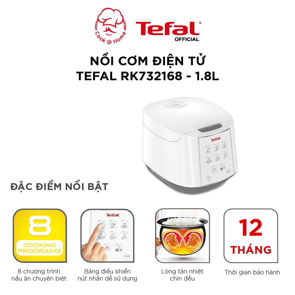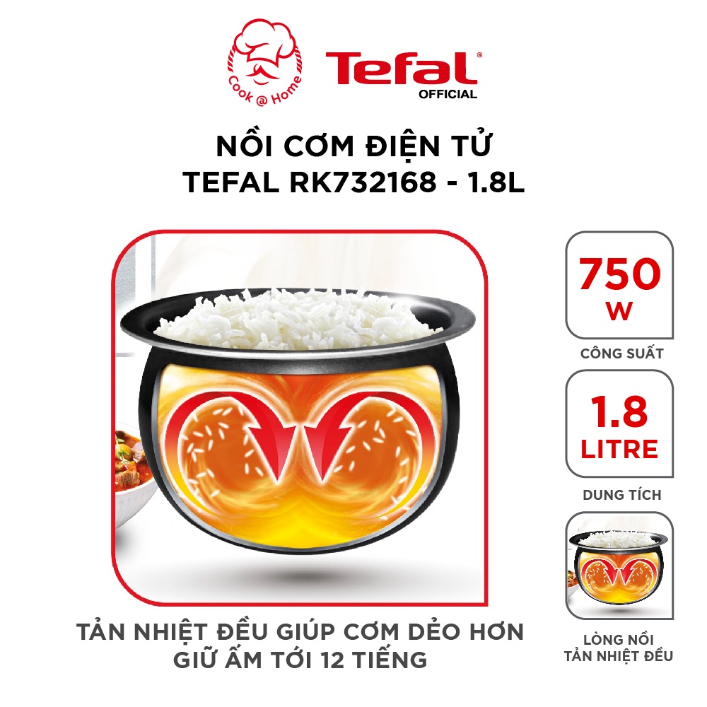 Nồi cơm điện tử Tefal RK732168 - 1.8L- 750w với thiết kế sang trọng , hiện đạiĐặc điểm nổi bật: