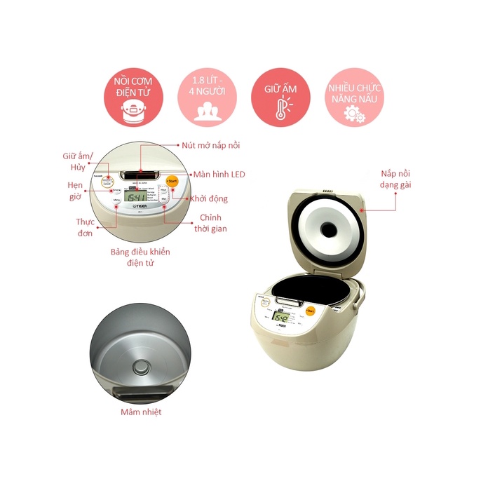 Thiết Bị Điện Gia Dụng > Đồ gia dụng nhà bếp > Nồi cơm điện || Nồi cơm điện tử Tiger 4 trong 1 JBV-S10W (1.0L)/JBV-S18W (1.8L) - Hàng chính hãng bảo hành 12 thángCòn hàng