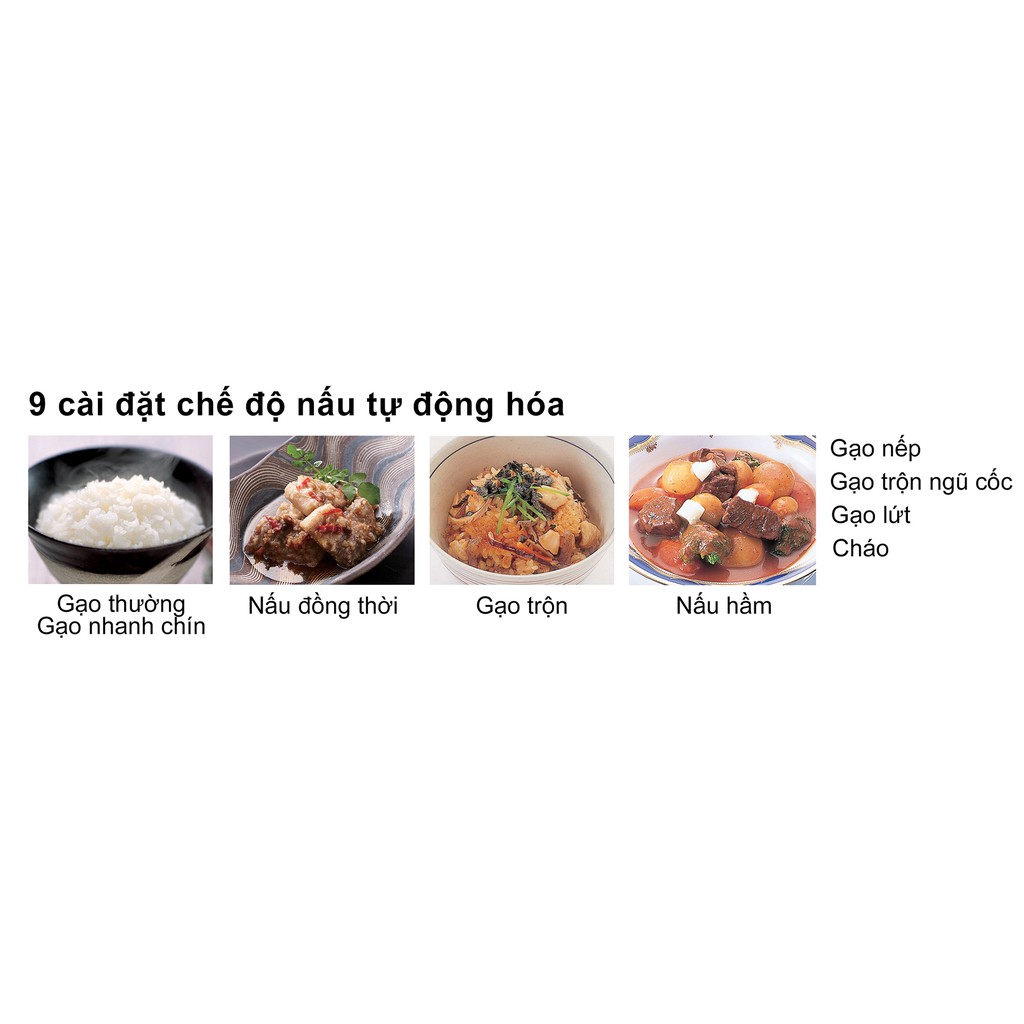 Nồi cơm được điều khiển bằng nút bấm điện tử chìm và màn hình hiển thị đầy đủ các chức năng. Bạn chỉ việc chọn chức năng nấu theo nhu cầu sử dụng đã được thiết lập sẵn, nồi sẽ tự đổng chuyển chế độ giữ nóng khi cơm chín.