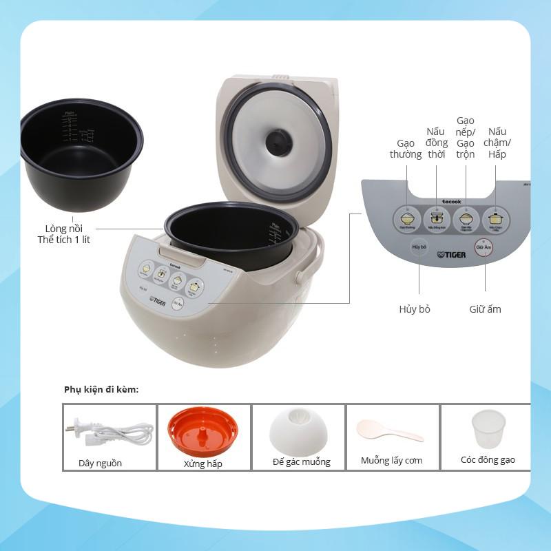 Thiết Bị Điện Gia Dụng > Đồ gia dụng nhà bếp > Nồi cơm điện || [Mã ELHASALE1TR giảm 5% đơn 3TR] Nồi Cơm Điện Tử Tiger JBV-S10W , 1 LítCòn hàng