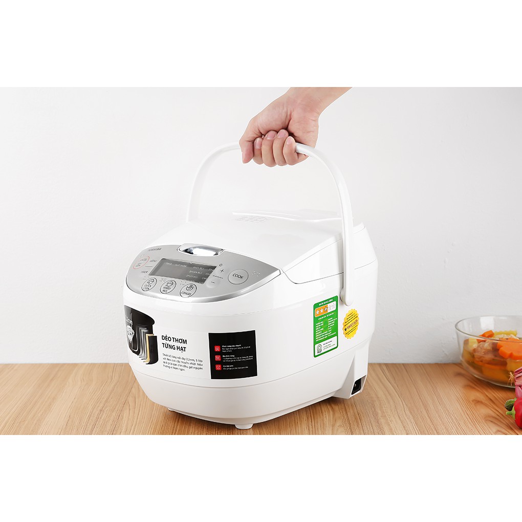 - Nồi cơm điện tử Toshiba 1.8 lít RC-18DH2PV(W) kiểu dáng bo cong mềm mại, có quai xách tiện dụng cho việc cầm nắm