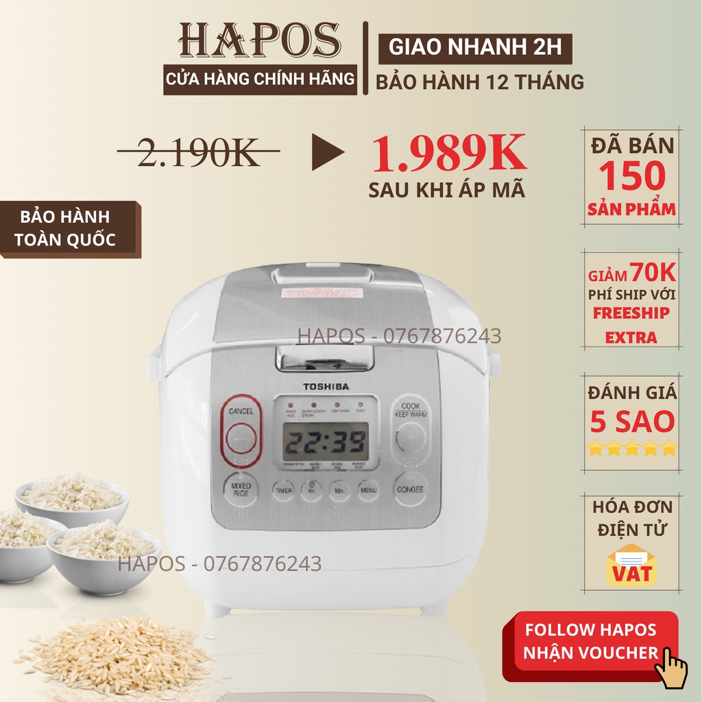 Nồi cơm điện tử Toshiba 1 lít - 1.8 lít hợp kim nhôm chống dính 800W giữ ấm đến 24 giờ - HAPOS