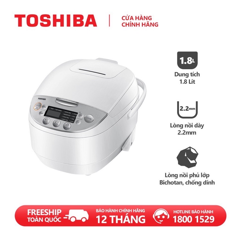 Nồi cơm điện tử Toshiba RC-18DH2PV(W) - 1.8L - Lòng nồi dày 2.2mm, chống dính - Hàng chính hãng, bảo hành 12 tháng