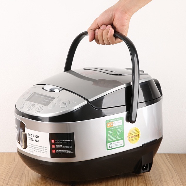 - Bảng điều khiển nút nhấn điều chỉnh dễ dàng cho 11 chế độ và hẹn giờ nấu tiện lợi: nấu nhanh, gạo trộn, gạo lứt, cháo, gạo trắng, sushi, gạo nếp, cơm cháy.