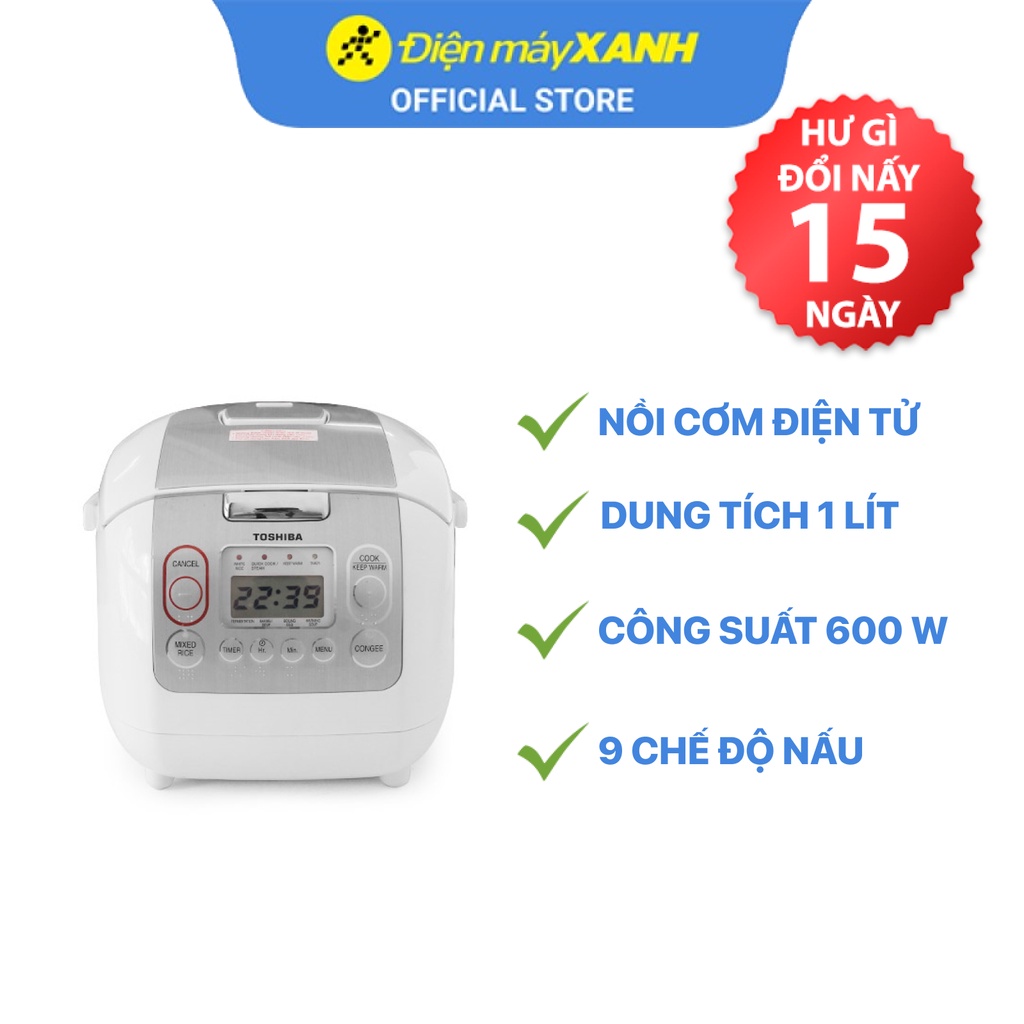 Nồi cơm điện tử Toshiba RC-10NMFVN(WT) 1 lít 600 W lòng nồi chống dính - Chính hãng BH 12 tháng - Sản xuất tại Thái Lan