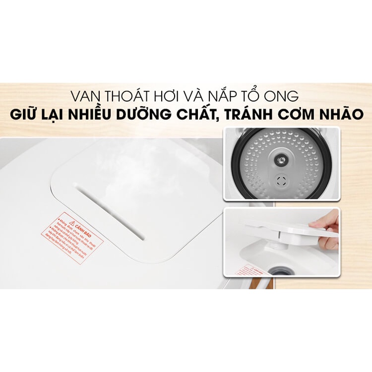 Công suất 760W kết hợp với mâm nhiệt lớn đảm bảo cơm được nấu chín đều và nhanh chóng, tiết kiệm tối đa thời gian của bạn. Ngoài ra nồi còn được trang bị van thoát khí thông minh giúp giữ lại các dưỡng chất và vitamin có trong cơm.