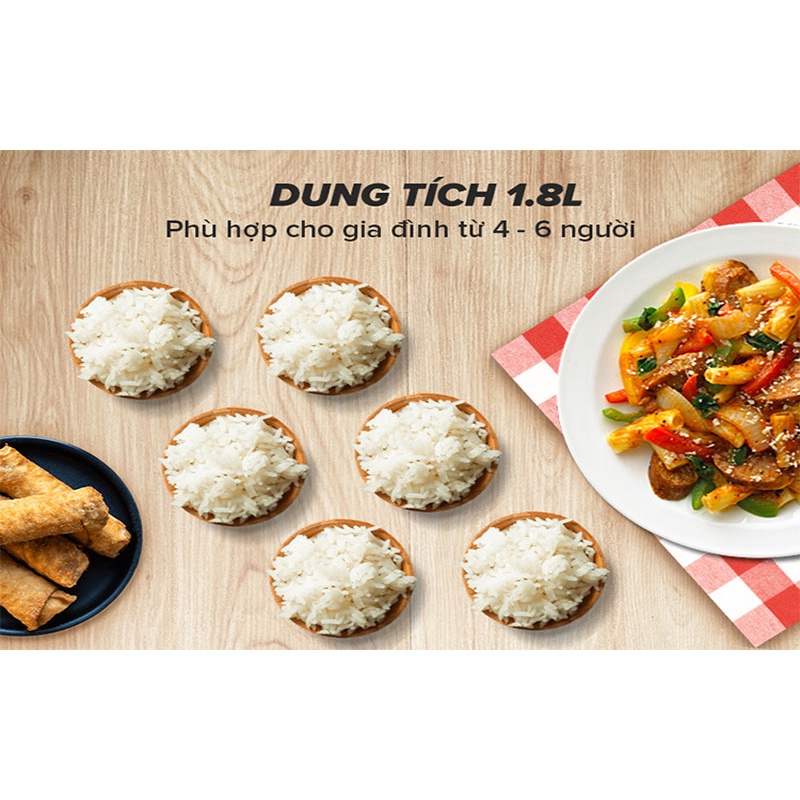 - Dung tích 1.8 lít phù hợp với gia đình có từ 4- 6 thành viên