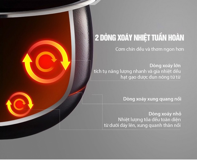 - Dòng xoáy nhỏ đảm bảo nhiệt lượng tỏa đều toàn diện từ đáy lên, xung quanh thân nồi.