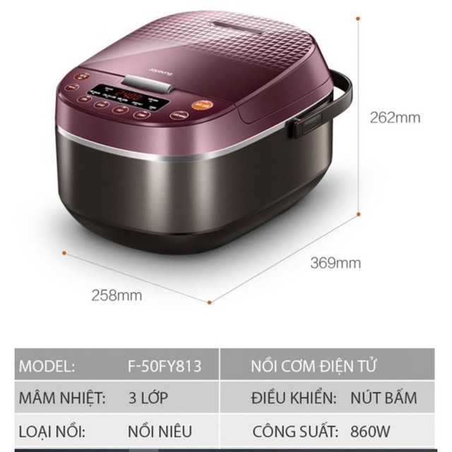 - Nồi Cơm Điện Tử Joyoung F-50FY13 được sản xuất với những chức năng như: giữ nóng, tự động điều chỉnh nhiệt, đèn báo chế độ nấu canh và hâm nóng, làm bá Giúp bạn chuẩn bị bữa cơm gia đình một cách dễ dàng và nhanh chóng hơn.