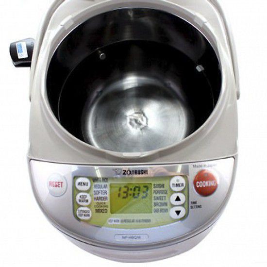 Nồi cơm điện Zojirushi NP-HBQ10-XA hẹn giờ nấu, giữ ấm hay làm nóng lại. Nắp nồi thoát hơi nước tháo rời giúp vệ sinh dễ.