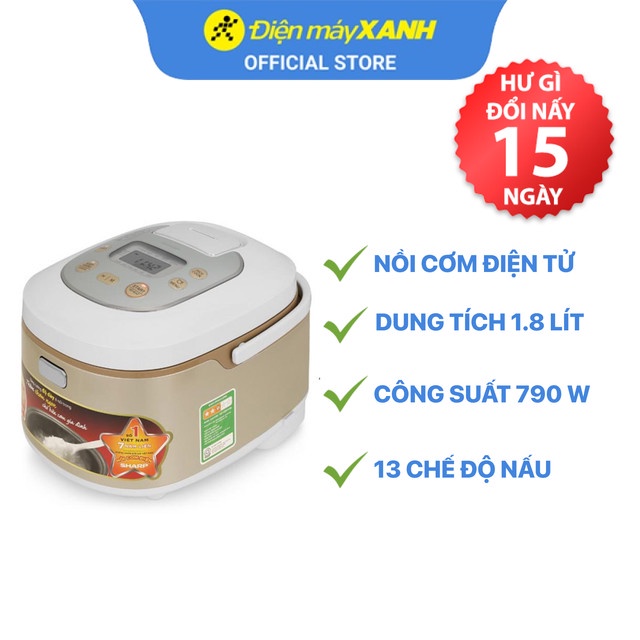 Nồi cơm điệnđiện tử Sharp KS-TH18-GL 1.8 lít 790 W lòng nồi chống dính - Chính hãng BH 12 tháng