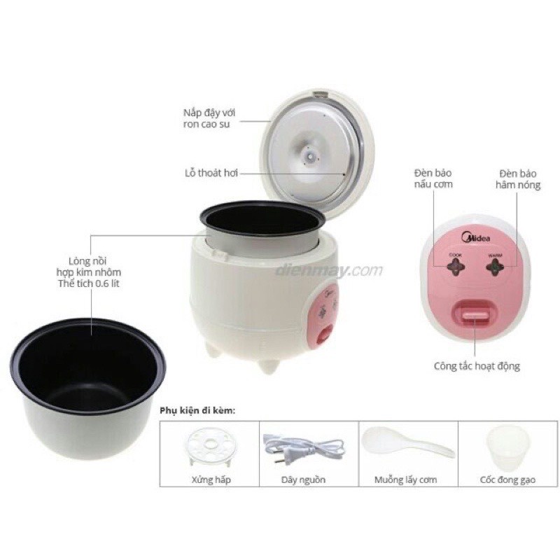 [Mã ELHADEV giảm 4% đơn 300K] Nồi Cơm Media 0,6l CM-0,6SA ( Bảo Hành Chính Hãng 1 Năm )
