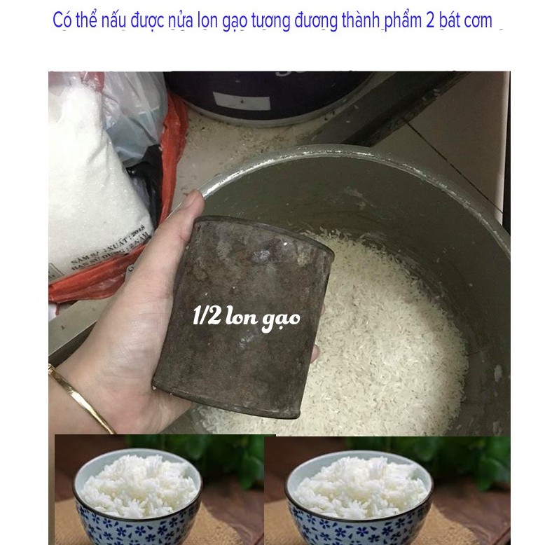 - Sản phẩm có dung tích: 0.5 L. Nấu được khoảng nửa lon gạo = Tương đương thành phẩm 2 bát cơm
