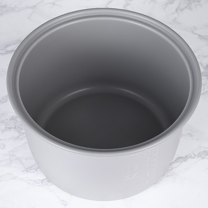 ● Lòng nồi làm từ hợp kim nhôm được phủ lớp chống dính, giúp cơm không cháy khét và bám dính, dễ vệ sinh, đảm bảo anh toàn cho người sử dụng