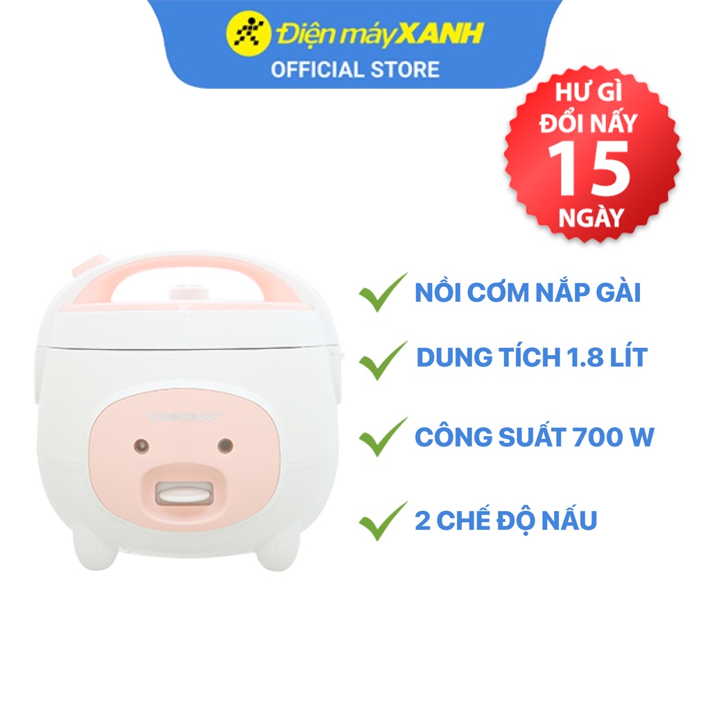 Nồi cơm nắp gài Sunhouse 1.8 lít SHD8607W thiết kế đẹp, dùng nấu cơm nhanh, giá cả phải chăng, xứng đáng có mặt trong mọi gia đình.