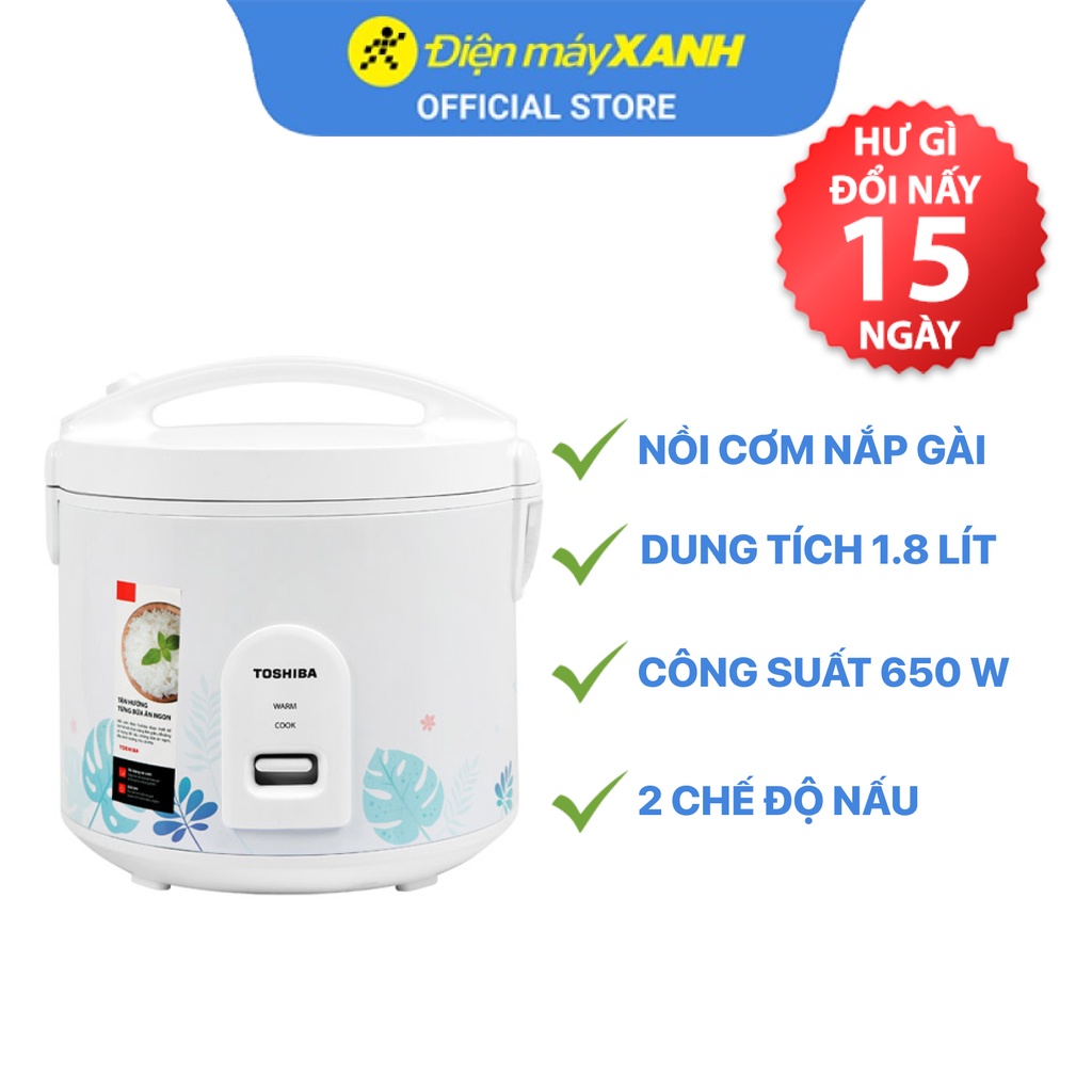 Thiết Bị Điện Gia Dụng > Đồ gia dụng nhà bếp > Nồi cơm điện || [Mã ELMALL150 giảm 8% đơn 500K] Nồi cơm nắp gài Toshiba 1.8 lít RC-18JH2PV(B)Còn hàng