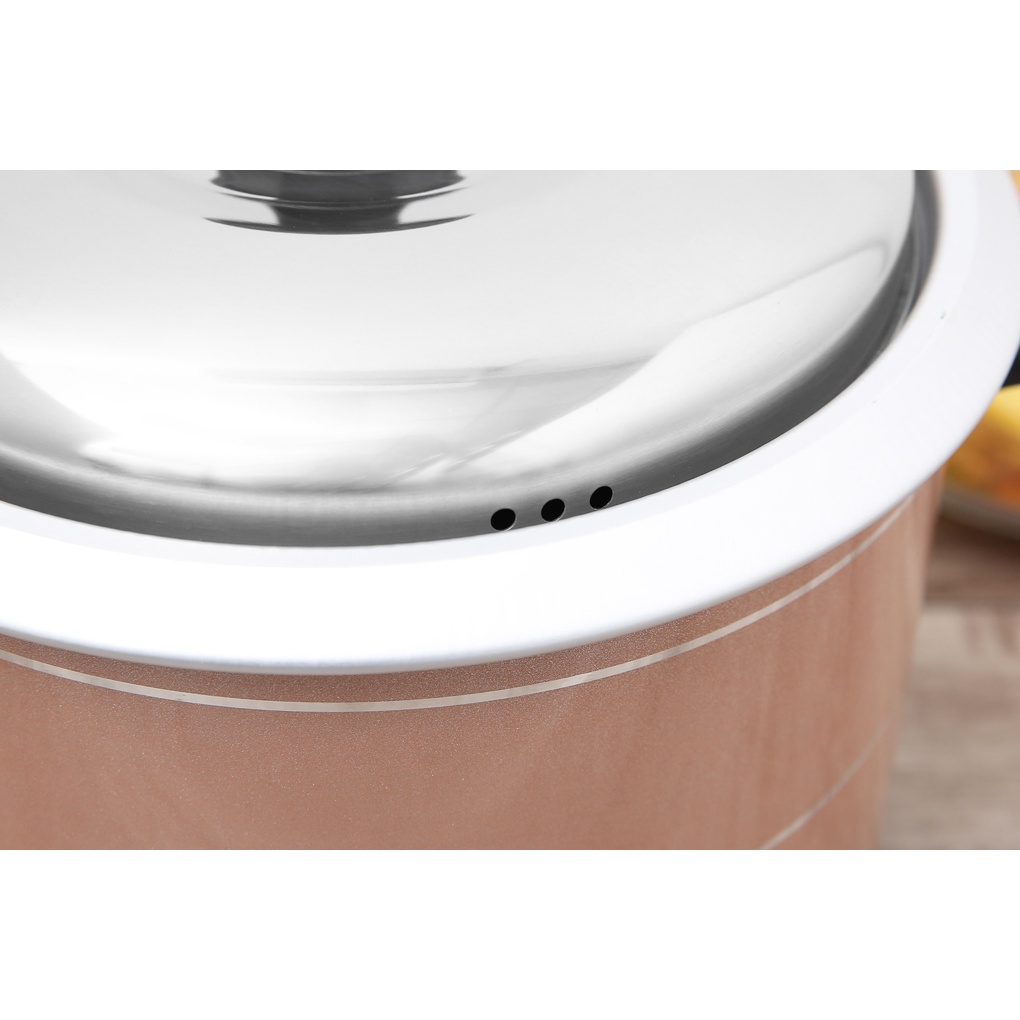Nắp dễ lau chùi, thiết kế kín chặt với miệng nồi giữ nhiệt tốt, có lỗ thoát khí chống trào.