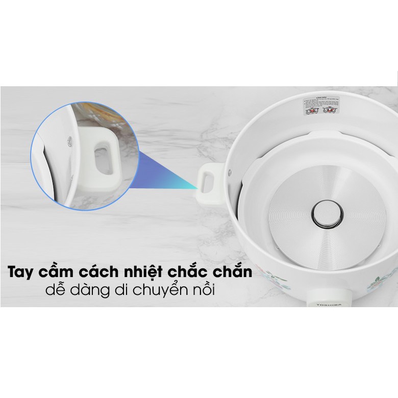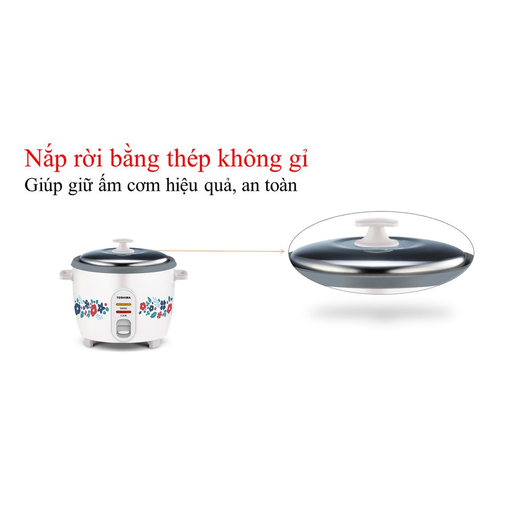 Nồi cơm điện Toshibakiểu dáng mềm mại, họa tiết trang nhã, thiết kế nắp rời với dung tích 1.8 lít dùng cho gia đình4 - 6 thành viên