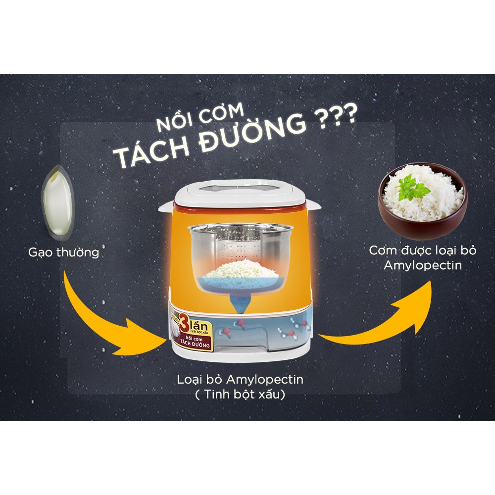 Nồi cơm tách đường là dòng sản phẩm được nghiên cứu để loại bỏ Amylopectin trong gạo, loại bỏ thành phần tinh bột hấp thụ nhanh – tinh bột xấu. Amylopectin là một trong những tác nhân gây ra căn bệnh tiểu đường, làm gia tăng lượng đường trong máu sau khi ăn. Khi đó tuyến tụy phải tiết nhiều insulin hơn vào máu để chống lại sự gia tăng đột ngột của đường huyết. Sau một thời gian dài tình trạng này diễn ra liên tục, các tế bào bắt đầu kháng lại những đợt tăng insulin gây ra bởi những tinh bột xấu. Sau nhiều năm, tuyến tụy sẽ chịu thua và không tiết ra được nhiều insulin nữa. Bệnh tiểu đường cũng được hình thành từ đây.