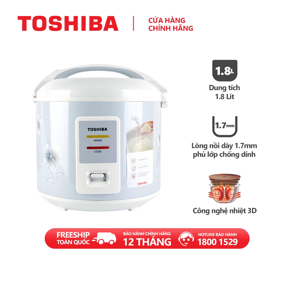 Nồi cơm TOSHIBA nắp gài RC-18JFM2(H)VN - 1.8L - Lòng nồi dày 1.7mm, chống dính - Hàng chính hãng, bảo hành 12 tháng