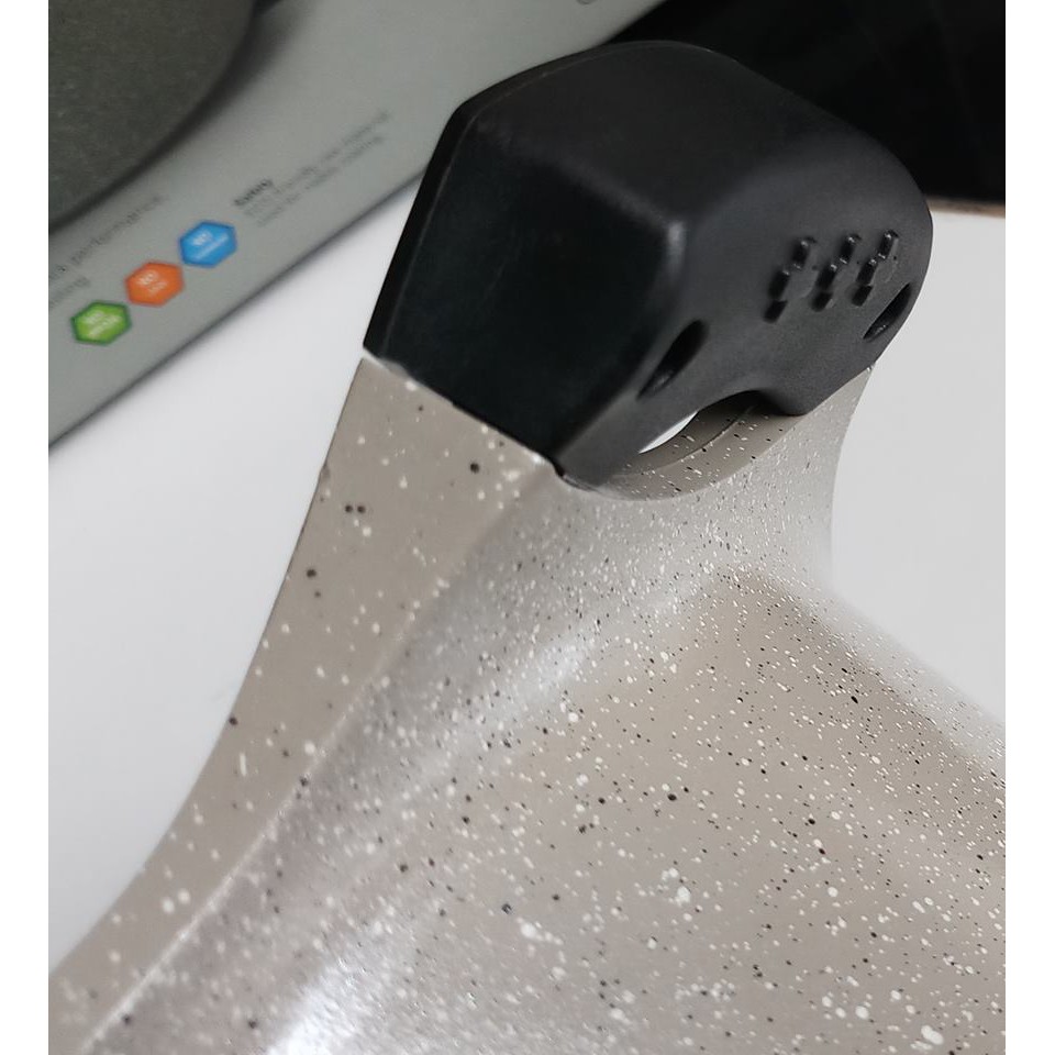 - Chất liệu : Thân nhôm đúc nguyên khối, bên trong được tráng lớp chống dính, bên ngoài phủ lớp sơn chịu nhiệt, với công nghệ thiết kế 7 lớp cao cấp. Tay cầm bằng nhựa. Nắp nồi thủy tinh, vòng viền quanh nắp thép không gỉ