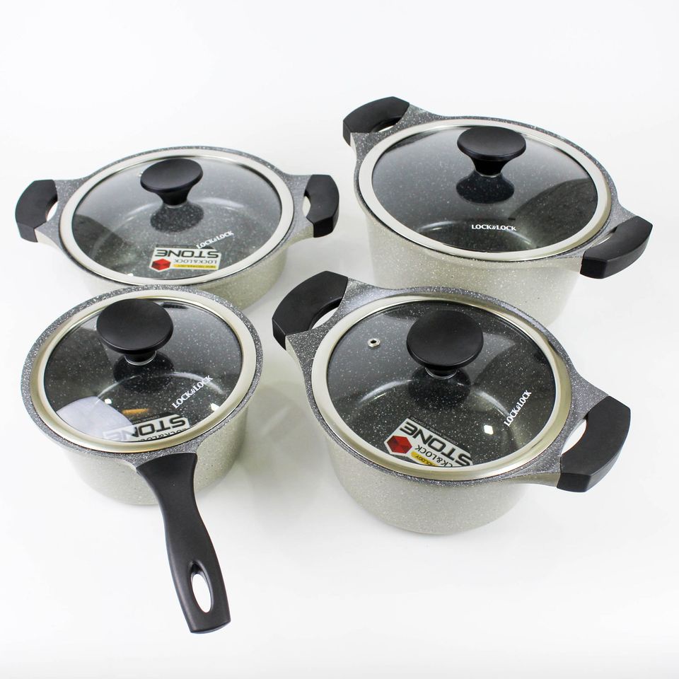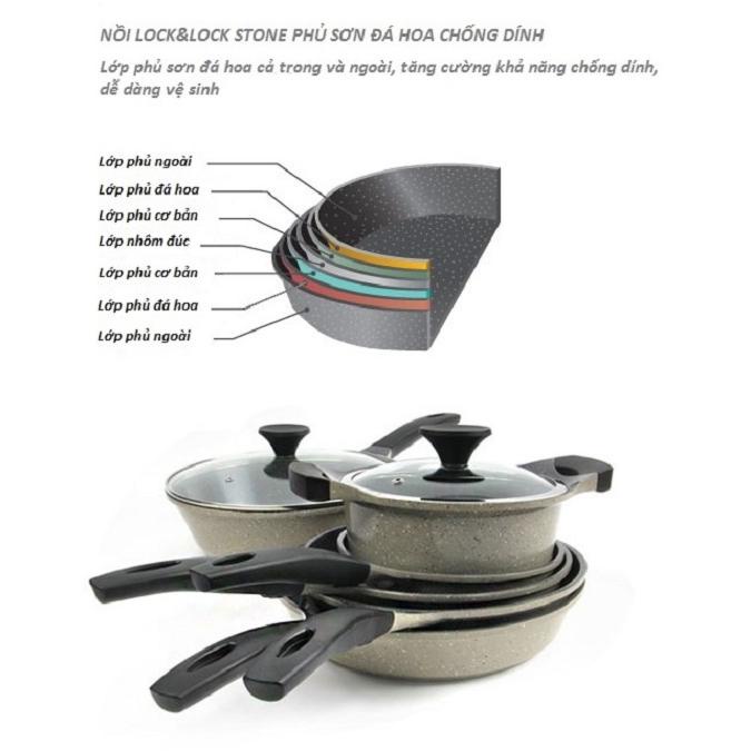 Nồi đá Lock&Lock Stone chống dính, chảo đá, quánh đá dẫn nhiệt tốt đường kính 18cm 20cm 24cm có thể dùng bếp từ - HAPOS