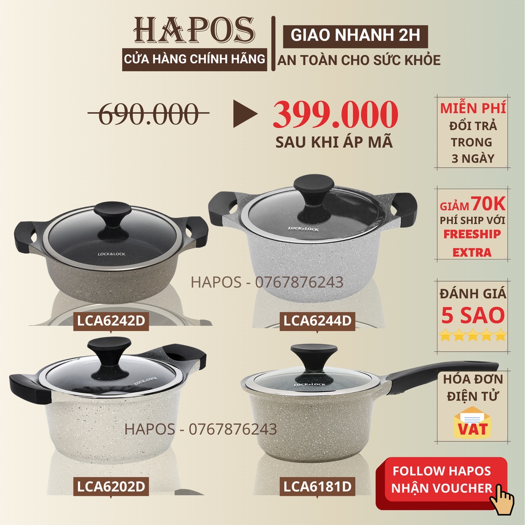 Nhà cửa & Đời sống > Dụng cụ nhà bếp > Nồi || Nồi đá Lock&Lock Stone chống dính, chảo đá, quánh đá dẫn nhiệt tốt đường kính 18cm 20cm 24cm có thể dùng bếp từ - HAPOSCòn hàng