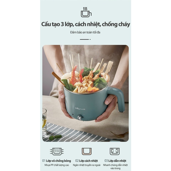 Nắm được nhu cầu sử dụng của người tiêu dùng, Bear đã trang bị đến 3 lớp cách và truyền nhiệt khác nhau để vừa đảm bảo an toàn cho bạn vừa đảm bảo thức ăn được chín nhanh chóng